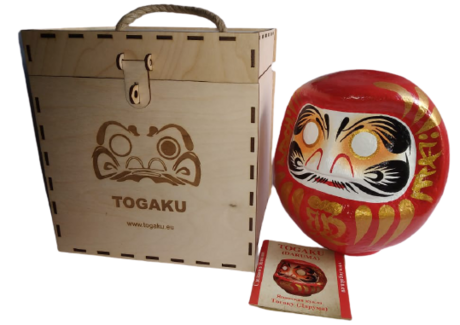 Тогаку или по другому Дарума представляет собой неваляшку, которая изготавливается мастерами вручную из бумаги (папье-маше) и очень редко из дерева, и не имеет рук и ног.